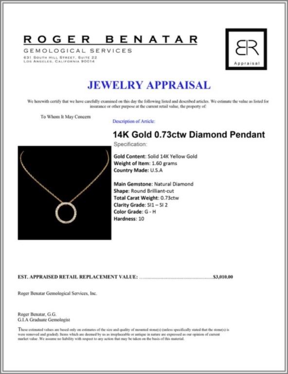 Regarding Appraised Jewelry and Loose Stones - Auctionfarm sends them out to a third party for Retail Replacement Value Appraisals, which are the most common. These types of evaluations are written for insurance needs. This would be the cost to replace the jewelry with an item of equal quality and kind, considered to be the current market price or the replacement value. This type of appraisal is done to protect you in the event of damage or loss of a valuable item. Our appraisals are conducted by independent 3rd Party appraisal firms that utilizes Certified GIA Gemologist. Appraisals should be used for verification of gemstone and/or metal weight, size, and grade only, not actual value. Appraisal value should be considered for insurance purposes only, not actual value, as price varies greatly from retail locations thru out the world. Items should not be purchased with the expectation to resell for appraisal price, or for profit.