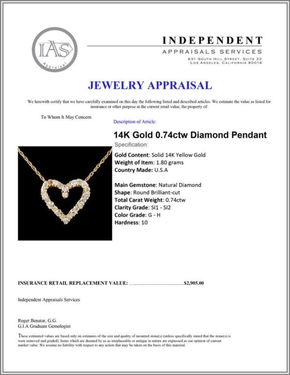 Regarding Appraised Jewelry and Loose Stones - Auctionfarm sends them out to a third party for Retail Replacement Value Appraisals, which are the most common. These types of evaluations are written for insurance needs. This would be the cost to replace the jewelry with an item of equal quality and kind, considered to be the current market price or the replacement value. This type of appraisal is done to protect you in the event of damage or loss of a valuable item. Our appraisals are conducted by independent 3rd Party appraisal firms that utilizes Certified GIA Gemologist. Appraisals should be used for verification of gemstone and/or metal weight, size, and grade only, not actual value. Appraisal value should be considered for insurance purposes only, not actual value, as price varies greatly from retail locations thru out the world. Items should not be purchased with the expectation to resell for appraisal price, or for profit.