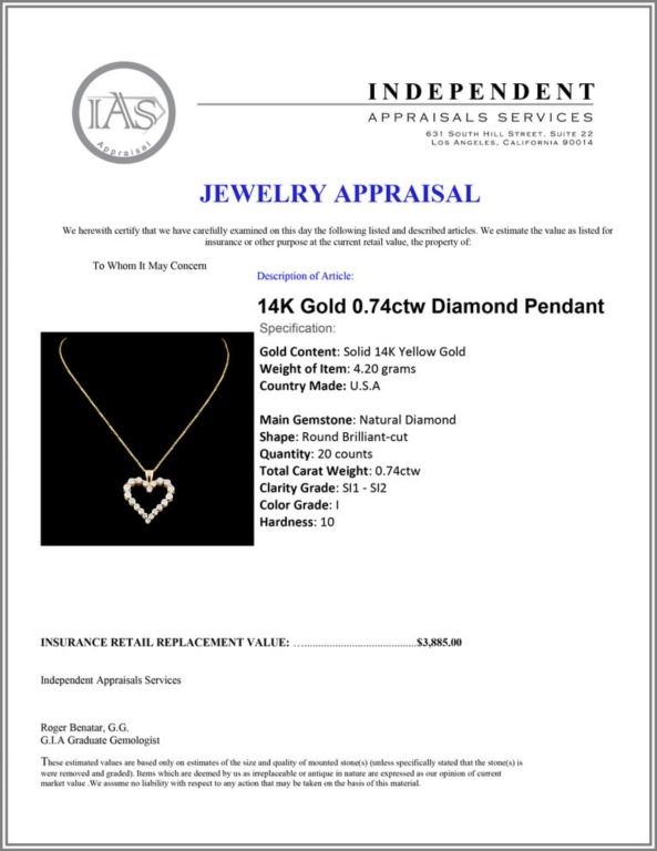 Regarding Appraised Jewelry and Loose Stones - Auctionfarm sends them out to a third party for Retail Replacement Value Appraisals, which are the most common. These types of evaluations are written for insurance needs. This would be the cost to replace the jewelry with an item of equal quality and kind, considered to be the current market price or the replacement value. This type of appraisal is done to protect you in the event of damage or loss of a valuable item. Our appraisals are conducted by independent 3rd Party appraisal firms that utilizes Certified GIA Gemologist. Appraisals should be used for verification of gemstone and/or metal weight, size, and grade only, not actual value. Appraisal value should be considered for insurance purposes only, not actual value, as price varies greatly from retail locations thru out the world. Items should not be purchased with the expectation to resell for appraisal price, or for profit.