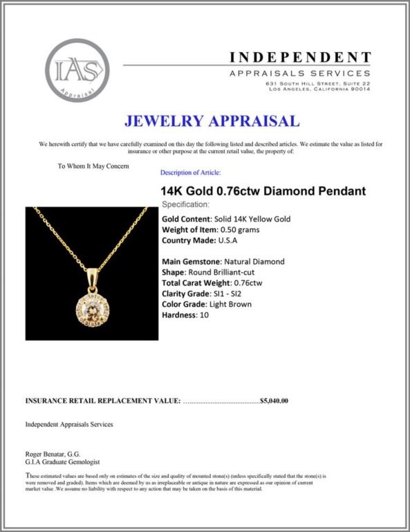 Regarding Appraised Jewelry and Loose Stones - Auctionfarm sends them out to a third party for Retail Replacement Value Appraisals, which are the most common. These types of evaluations are written for insurance needs. This would be the cost to replace the jewelry with an item of equal quality and kind, considered to be the current market price or the replacement value. This type of appraisal is done to protect you in the event of damage or loss of a valuable item. Our appraisals are conducted by independent 3rd Party appraisal firms that utilizes Certified GIA Gemologist. Appraisals should be used for verification of gemstone and/or metal weight, size, and grade only, not actual value. Appraisal value should be considered for insurance purposes only, not actual value, as price varies greatly from retail locations thru out the world. Items should not be purchased with the expectation to resell for appraisal price, or for profit.
