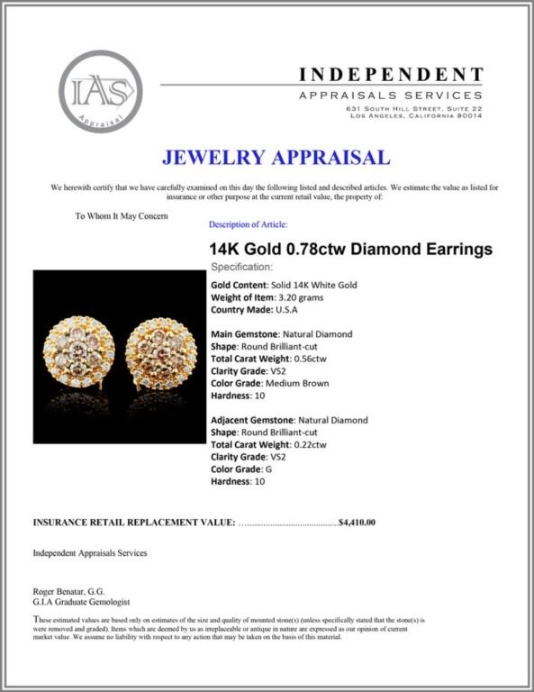 Regarding Appraised Jewelry and Loose Stones - Auctionfarm sends them out to a third party for Retail Replacement Value Appraisals, which are the most common. These types of evaluations are written for insurance needs. This would be the cost to replace the jewelry with an item of equal quality and kind, considered to be the current market price or the replacement value. This type of appraisal is done to protect you in the event of damage or loss of a valuable item. Our appraisals are conducted by independent 3rd Party appraisal firms that utilizes Certified GIA Gemologist. Appraisals should be used for verification of gemstone and/or metal weight, size, and grade only, not actual value. Appraisal value should be considered for insurance purposes only, not actual value, as price varies greatly from retail locations thru out the world. Items should not be purchased with the expectation to resell for appraisal price, or for profit.