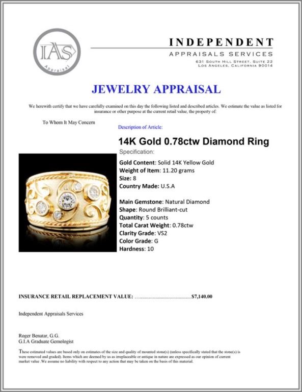Total Carat Weight: 0.78ctw