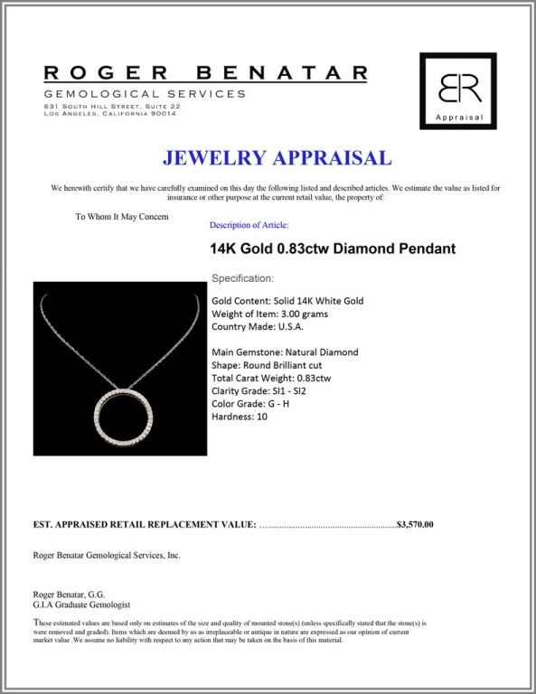 Total Carat Weight: 0.83ctw