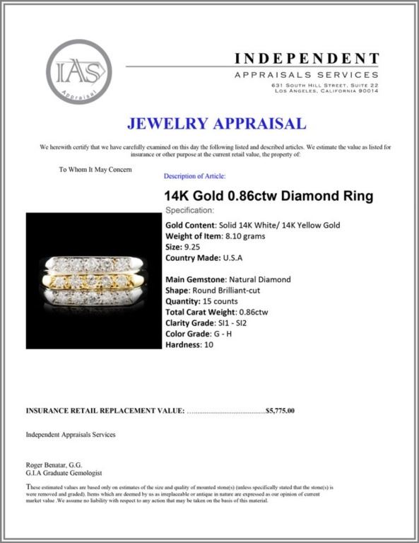 Regarding Appraised Jewelry and Loose Stones - Auctionfarm sends them out to a third party for Retail Replacement Value Appraisals, which are the most common. These types of evaluations are written for insurance needs. This would be the cost to replace the jewelry with an item of equal quality and kind, considered to be the current market price or the replacement value. This type of appraisal is done to protect you in the event of damage or loss of a valuable item. Our appraisals are conducted by independent 3rd Party appraisal firms that utilizes Certified GIA Gemologist. Appraisals should be used for verification of gemstone and/or metal weight, size, and grade only, not actual value. Appraisal value should be considered for insurance purposes only, not actual value, as price varies greatly from retail locations thru out the world. Items should not be purchased with the expectation to resell for appraisal price, or for profit.