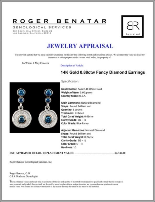 Regarding Appraised Jewelry and Loose Stones - Auctionfarm sends them out to a third party for Retail Replacement Value Appraisals, which are the most common. These types of evaluations are written for insurance needs. This would be the cost to replace the jewelry with an item of equal quality and kind, considered to be the current market price or the replacement value. This type of appraisal is done to protect you in the event of damage or loss of a valuable item. Our appraisals are conducted by independent 3rd Party appraisal firms that utilizes Certified GIA Gemologist. Appraisals should be used for verification of gemstone and/or metal weight, size, and grade only, not actual value. Appraisal value should be considered for insurance purposes only, not actual value, as price varies greatly from retail locations thru out the world. Items should not be purchased with the expectation to resell for appraisal price, or for profit.