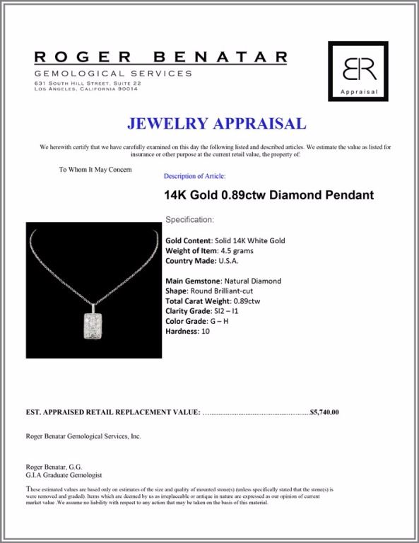 Total Carat Weight: 0.89ctw