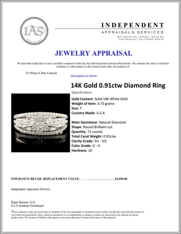 Regarding Appraised Jewelry and Loose Stones - Auctionfarm sends them out to a third party for Retail Replacement Value Appraisals, which are the most common. These types of evaluations are written for insurance needs. This would be the cost to replace the jewelry with an item of equal quality and kind, considered to be the current market price or the replacement value. This type of appraisal is done to protect you in the event of damage or loss of a valuable item. Our appraisals are conducted by independent 3rd Party appraisal firms that utilizes Certified GIA Gemologist. Appraisals should be used for verification of gemstone and/or metal weight, size, and grade only, not actual value. Appraisal value should be considered for insurance purposes only, not actual value, as price varies greatly from retail locations thru out the world. Items should not be purchased with the expectation to resell for appraisal price, or for profit.