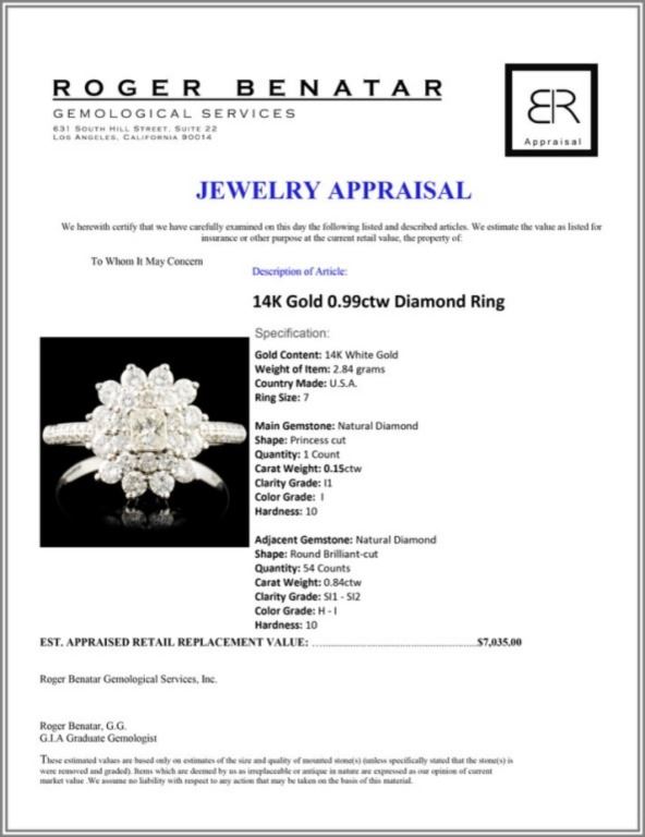 Regarding Appraised Jewelry and Loose Stones - Auctionfarm sends them out to a third party for Retail Replacement Value Appraisals, which are the most common. These types of evaluations are written for insurance needs. This would be the cost to replace the jewelry with an item of equal quality and kind, considered to be the current market price or the replacement value. This type of appraisal is done to protect you in the event of damage or loss of a valuable item. Our appraisals are conducted by independent 3rd Party appraisal firms that utilizes Certified GIA Gemologist. Appraisals should be used for verification of gemstone and/or metal weight, size, and grade only, not actual value. Appraisal value should be considered for insurance purposes only, not actual value, as price varies greatly from retail locations thru out the world. Items should not be purchased with the expectation to resell for appraisal price, or for profit.
