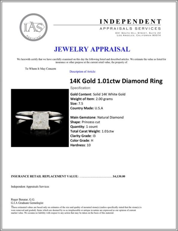 Regarding Appraised Jewelry and Loose Stones - Auctionfarm sends them out to a third party for Retail Replacement Value Appraisals, which are the most common. These types of evaluations are written for insurance needs. This would be the cost to replace the jewelry with an item of equal quality and kind, considered to be the current market price or the replacement value. This type of appraisal is done to protect you in the event of damage or loss of a valuable item. Our appraisals are conducted by independent 3rd Party appraisal firms that utilizes Certified GIA Gemologist. Appraisals should be used for verification of gemstone and/or metal weight, size, and grade only, not actual value. Appraisal value should be considered for insurance purposes only, not actual value, as price varies greatly from retail locations thru out the world. Items should not be purchased with the expectation to resell for appraisal price, or for profit.