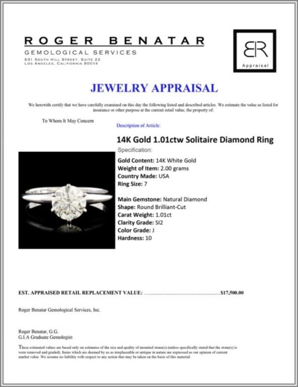 Regarding Appraised Jewelry and Loose Stones - Auctionfarm sends them out to a third party for Retail Replacement Value Appraisals, which are the most common. These types of evaluations are written for insurance needs. This would be the cost to replace the jewelry with an item of equal quality and kind, considered to be the current market price or the replacement value. This type of appraisal is done to protect you in the event of damage or loss of a valuable item. Our appraisals are conducted by independent 3rd Party appraisal firms that utilizes Certified GIA Gemologist. Appraisals should be used for verification of gemstone and/or metal weight, size, and grade only, not actual value. Appraisal value should be considered for insurance purposes only, not actual value, as price varies greatly from retail locations thru out the world. Items should not be purchased with the expectation to resell for appraisal price, or for profit.
