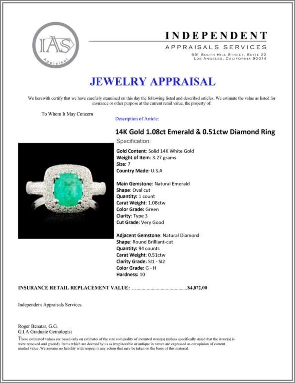 Regarding Appraised Jewelry and Loose Stones - Auctionfarm sends them out to a third party for Retail Replacement Value Appraisals, which are the most common. These types of evaluations are written for insurance needs. This would be the cost to replace the jewelry with an item of equal quality and kind, considered to be the current market price or the replacement value. This type of appraisal is done to protect you in the event of damage or loss of a valuable item. Our appraisals are conducted by independent 3rd Party appraisal firms that utilizes Certified GIA Gemologist. Appraisals should be used for verification of gemstone and/or metal weight, size, and grade only, not actual value. Appraisal value should be considered for insurance purposes only, not actual value, as price varies greatly from retail locations thru out the world. Items should not be purchased with the expectation to resell for appraisal price, or for profit.