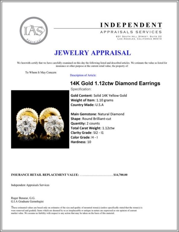 Total Carat Weight: 1.12ctw