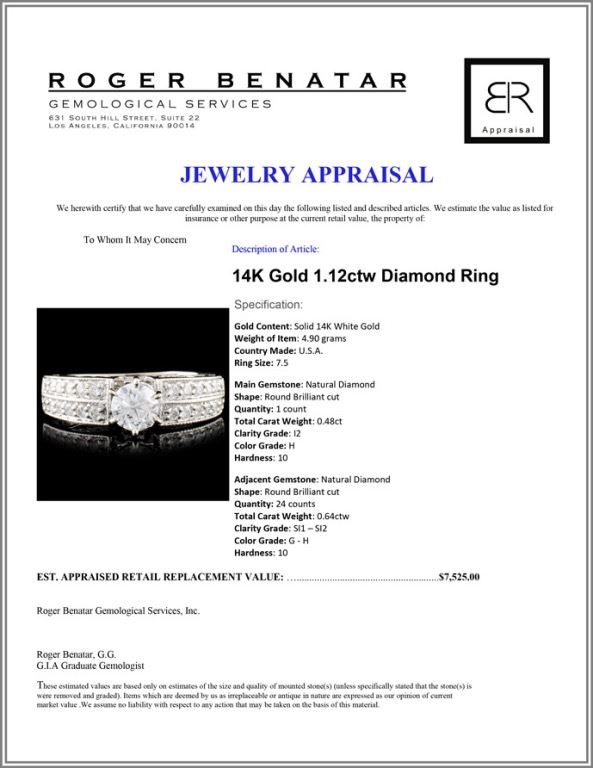 Gold Content: Solid 14K White Gold