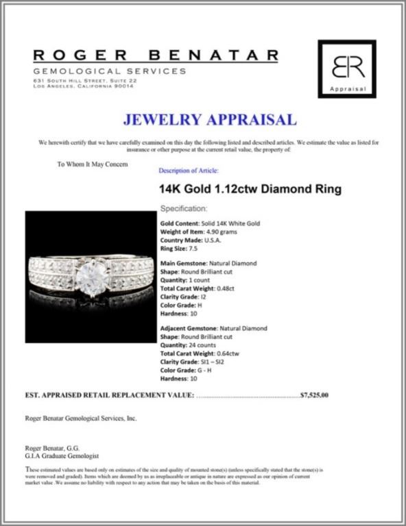 Regarding Appraised Jewelry and Loose Stones - Auctionfarm sends them out to a third party for Retail Replacement Value Appraisals, which are the most common. These types of evaluations are written for insurance needs. This would be the cost to replace the jewelry with an item of equal quality and kind, considered to be the current market price or the replacement value. This type of appraisal is done to protect you in the event of damage or loss of a valuable item. Our appraisals are conducted by independent 3rd Party appraisal firms that utilizes Certified GIA Gemologist. Appraisals should be used for verification of gemstone and/or metal weight, size, and grade only, not actual value. Appraisal value should be considered for insurance purposes only, not actual value, as price varies greatly from retail locations thru out the world. Items should not be purchased with the expectation to resell for appraisal price, or for profit.