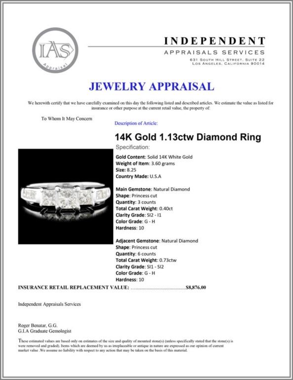 Regarding Appraised Jewelry and Loose Stones - Auctionfarm sends them out to a third party for Retail Replacement Value Appraisals, which are the most common. These types of evaluations are written for insurance needs. This would be the cost to replace the jewelry with an item of equal quality and kind, considered to be the current market price or the replacement value. This type of appraisal is done to protect you in the event of damage or loss of a valuable item. Our appraisals are conducted by independent 3rd Party appraisal firms that utilizes Certified GIA Gemologist. Appraisals should be used for verification of gemstone and/or metal weight, size, and grade only, not actual value. Appraisal value should be considered for insurance purposes only, not actual value, as price varies greatly from retail locations thru out the world. Items should not be purchased with the expectation to resell for appraisal price, or for profit.