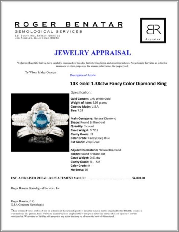 Regarding Appraised Jewelry and Loose Stones - Auctionfarm sends them out to a third party for Retail Replacement Value Appraisals, which are the most common. These types of evaluations are written for insurance needs. This would be the cost to replace the jewelry with an item of equal quality and kind, considered to be the current market price or the replacement value. This type of appraisal is done to protect you in the event of damage or loss of a valuable item. Our appraisals are conducted by independent 3rd Party appraisal firms that utilizes Certified GIA Gemologist. Appraisals should be used for verification of gemstone and/or metal weight, size, and grade only, not actual value. Appraisal value should be considered for insurance purposes only, not actual value, as price varies greatly from retail locations thru out the world. Items should not be purchased with the expectation to resell for appraisal price, or for profit.