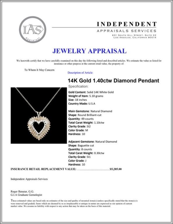 Regarding Appraised Jewelry and Loose Stones - Auctionfarm sends them out to a third party for Retail Replacement Value Appraisals, which are the most common. These types of evaluations are written for insurance needs. This would be the cost to replace the jewelry with an item of equal quality and kind, considered to be the current market price or the replacement value. This type of appraisal is done to protect you in the event of damage or loss of a valuable item. Our appraisals are conducted by independent 3rd Party appraisal firms that utilizes Certified GIA Gemologist. Appraisals should be used for verification of gemstone and/or metal weight, size, and grade only, not actual value. Appraisal value should be considered for insurance purposes only, not actual value, as price varies greatly from retail locations thru out the world. Items should not be purchased with the expectation to resell for appraisal price, or for profit.