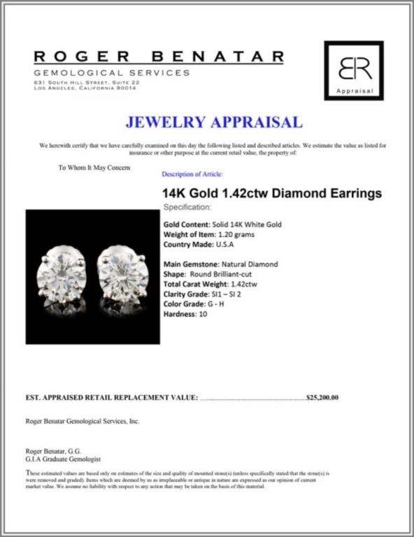 Regarding Appraised Jewelry and Loose Stones - Auctionfarm sends them out to a third party for Retail Replacement Value Appraisals, which are the most common. These types of evaluations are written for insurance needs. This would be the cost to replace the jewelry with an item of equal quality and kind, considered to be the current market price or the replacement value. This type of appraisal is done to protect you in the event of damage or loss of a valuable item. Our appraisals are conducted by independent 3rd Party appraisal firms that utilizes Certified GIA Gemologist. Appraisals should be used for verification of gemstone and/or metal weight, size, and grade only, not actual value. Appraisal value should be considered for insurance purposes only, not actual value, as price varies greatly from retail locations thru out the world. Items should not be purchased with the expectation to resell for appraisal price, or for profit.