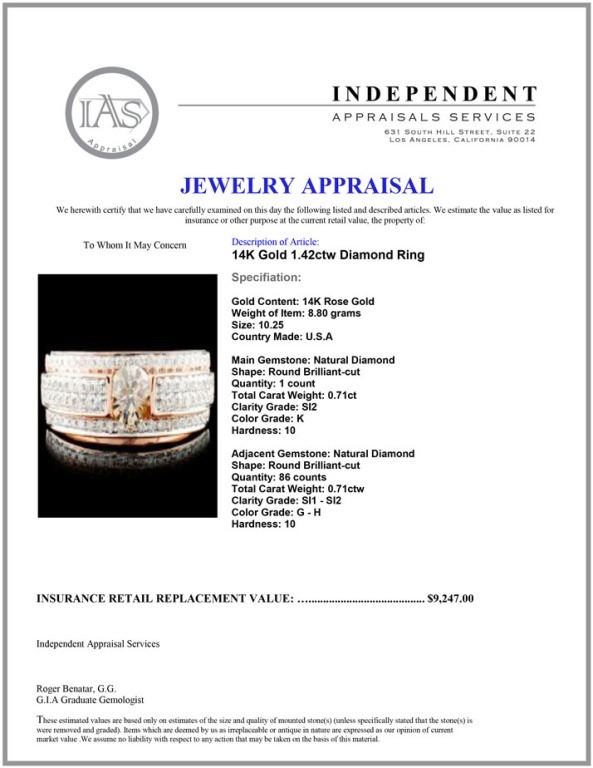 14K Gold 1.42ctw Diamond Ring