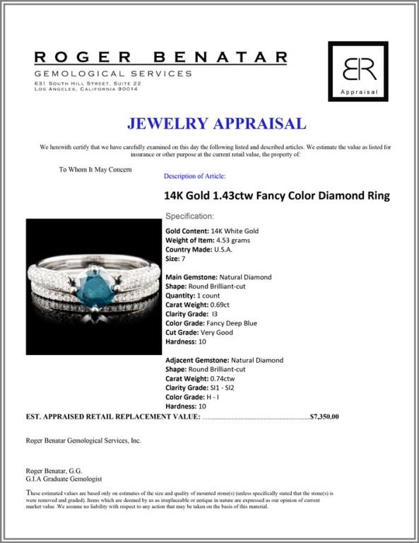 14K Gold 1.43ctw Fancy Color Diamond Ring