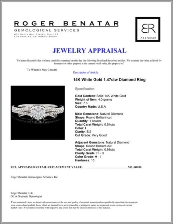 Regarding Appraised Jewelry and Loose Stones - Auctionfarm sends them out to a third party for Retail Replacement Value Appraisals, which are the most common. These types of evaluations are written for insurance needs. This would be the cost to replace the jewelry with an item of equal quality and kind, considered to be the current market price or the replacement value. This type of appraisal is done to protect you in the event of damage or loss of a valuable item. Our appraisals are conducted by independent 3rd Party appraisal firms that utilizes Certified GIA Gemologist. Appraisals should be used for verification of gemstone and/or metal weight, size, and grade only, not actual value. Appraisal value should be considered for insurance purposes only, not actual value, as price varies greatly from retail locations thru out the world. Items should not be purchased with the expectation to resell for appraisal price, or for profit.