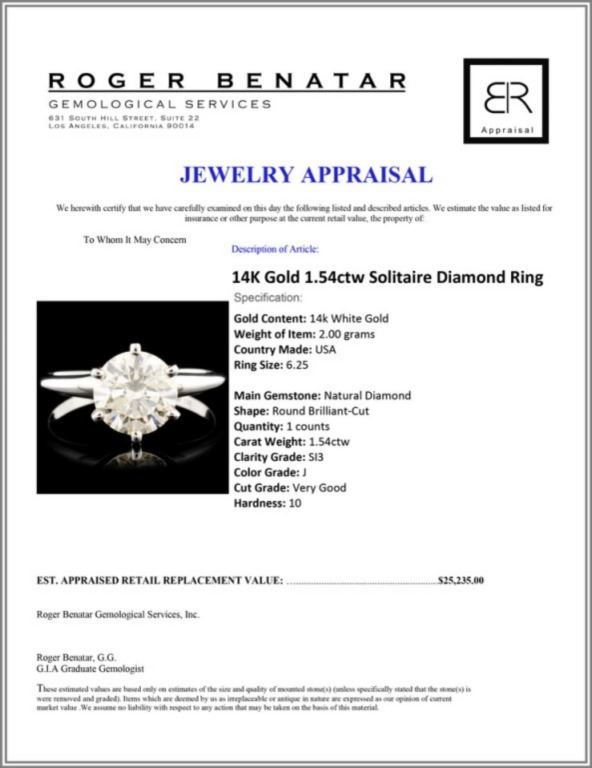 Regarding Appraised Jewelry and Loose Stones - Auctionfarm sends them out to a third party for Retail Replacement Value Appraisals, which are the most common. These types of evaluations are written for insurance needs. This would be the cost to replace the jewelry with an item of equal quality and kind, considered to be the current market price or the replacement value. This type of appraisal is done to protect you in the event of damage or loss of a valuable item. Our appraisals are conducted by independent 3rd Party appraisal firms that utilizes Certified GIA Gemologist. Appraisals should be used for verification of gemstone and/or metal weight, size, and grade only, not actual value. Appraisal value should be considered for insurance purposes only, not actual value, as price varies greatly from retail locations thru out the world. Items should not be purchased with the expectation to resell for appraisal price, or for profit.