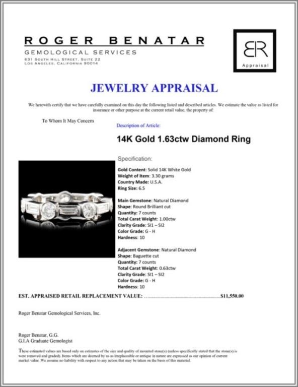 Regarding Appraised Jewelry and Loose Stones - Auctionfarm sends them out to a third party for Retail Replacement Value Appraisals, which are the most common. These types of evaluations are written for insurance needs. This would be the cost to replace the jewelry with an item of equal quality and kind, considered to be the current market price or the replacement value. This type of appraisal is done to protect you in the event of damage or loss of a valuable item. Our appraisals are conducted by independent 3rd Party appraisal firms that utilizes Certified GIA Gemologist. Appraisals should be used for verification of gemstone and/or metal weight, size, and grade only, not actual value. Appraisal value should be considered for insurance purposes only, not actual value, as price varies greatly from retail locations thru out the world. Items should not be purchased with the expectation to resell for appraisal price, or for profit.