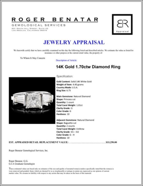 Regarding Appraised Jewelry and Loose Stones - Auctionfarm sends them out to a third party for Retail Replacement Value Appraisals, which are the most common. These types of evaluations are written for insurance needs. This would be the cost to replace the jewelry with an item of equal quality and kind, considered to be the current market price or the replacement value. This type of appraisal is done to protect you in the event of damage or loss of a valuable item. Our appraisals are conducted by independent 3rd Party appraisal firms that utilizes Certified GIA Gemologist. Appraisals should be used for verification of gemstone and/or metal weight, size, and grade only, not actual value. Appraisal value should be considered for insurance purposes only, not actual value, as price varies greatly from retail locations thru out the world. Items should not be purchased with the expectation to resell for appraisal price, or for profit.