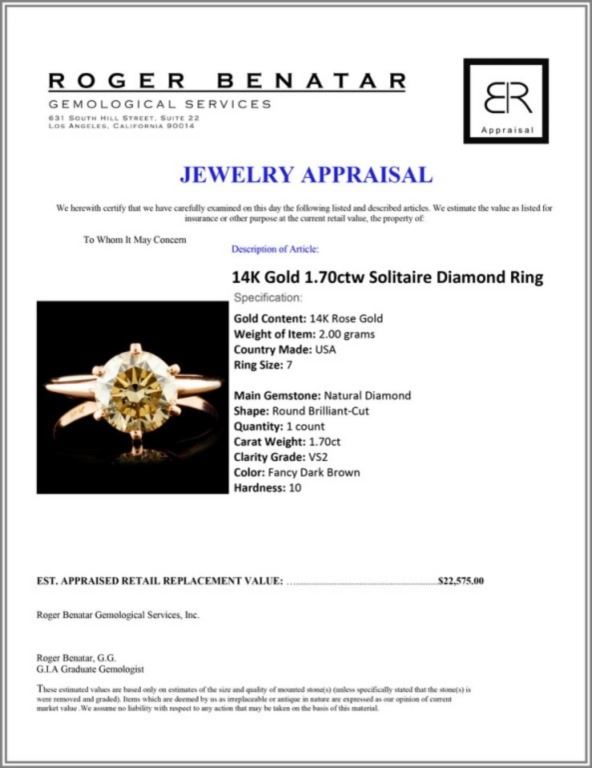 Regarding Appraised Jewelry and Loose Stones - Auctionfarm sends them out to a third party for Retail Replacement Value Appraisals, which are the most common. These types of evaluations are written for insurance needs. This would be the cost to replace the jewelry with an item of equal quality and kind, considered to be the current market price or the replacement value. This type of appraisal is done to protect you in the event of damage or loss of a valuable item. Our appraisals are conducted by independent 3rd Party appraisal firms that utilizes Certified GIA Gemologist. Appraisals should be used for verification of gemstone and/or metal weight, size, and grade only, not actual value. Appraisal value should be considered for insurance purposes only, not actual value, as price varies greatly from retail locations thru out the world. Items should not be purchased with the expectation to resell for appraisal price, or for profit.