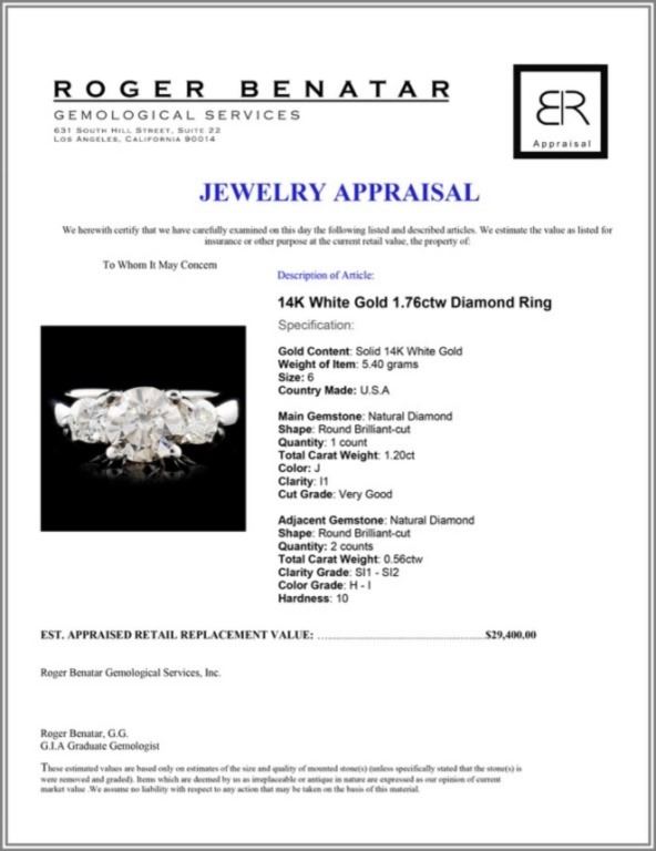 Regarding Appraised Jewelry and Loose Stones - Auctionfarm sends them out to a third party for Retail Replacement Value Appraisals, which are the most common. These types of evaluations are written for insurance needs. This would be the cost to replace the jewelry with an item of equal quality and kind, considered to be the current market price or the replacement value. This type of appraisal is done to protect you in the event of damage or loss of a valuable item. Our appraisals are conducted by independent 3rd Party appraisal firms that utilizes Certified GIA Gemologist. Appraisals should be used for verification of gemstone and/or metal weight, size, and grade only, not actual value. Appraisal value should be considered for insurance purposes only, not actual value, as price varies greatly from retail locations thru out the world. Items should not be purchased with the expectation to resell for appraisal price, or for profit.