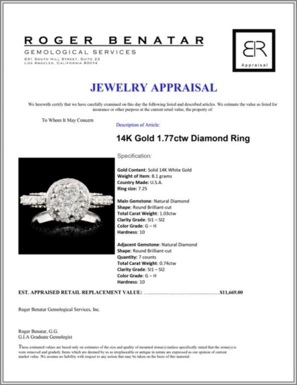 Regarding Appraised Jewelry and Loose Stones - Auctionfarm sends them out to a third party for Retail Replacement Value Appraisals, which are the most common. These types of evaluations are written for insurance needs. This would be the cost to replace the jewelry with an item of equal quality and kind, considered to be the current market price or the replacement value. This type of appraisal is done to protect you in the event of damage or loss of a valuable item. Our appraisals are conducted by independent 3rd Party appraisal firms that utilizes Certified GIA Gemologist. Appraisals should be used for verification of gemstone and/or metal weight, size, and grade only, not actual value. Appraisal value should be considered for insurance purposes only, not actual value, as price varies greatly from retail locations thru out the world. Items should not be purchased with the expectation to resell for appraisal price, or for profit.