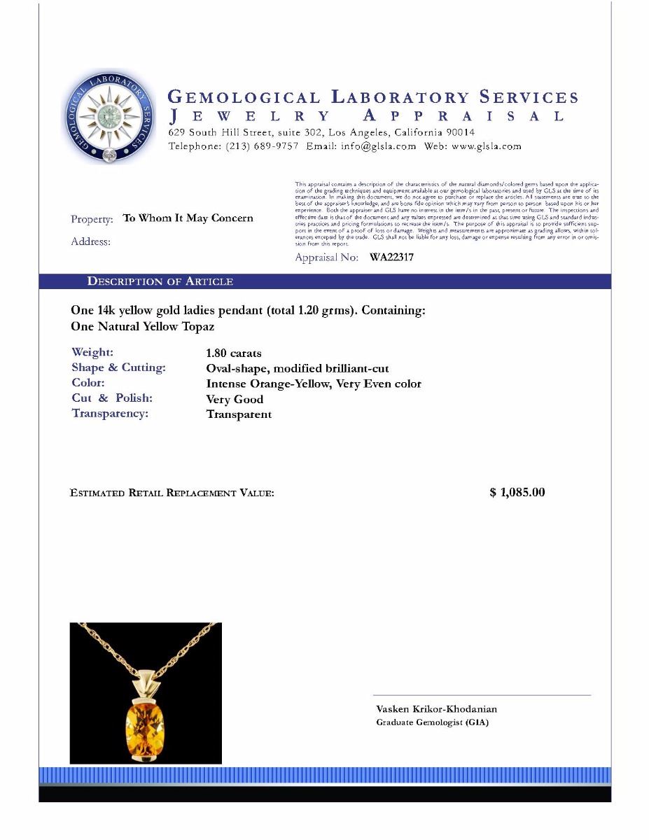 Estimated Retail Replacement Value: $1,085.00