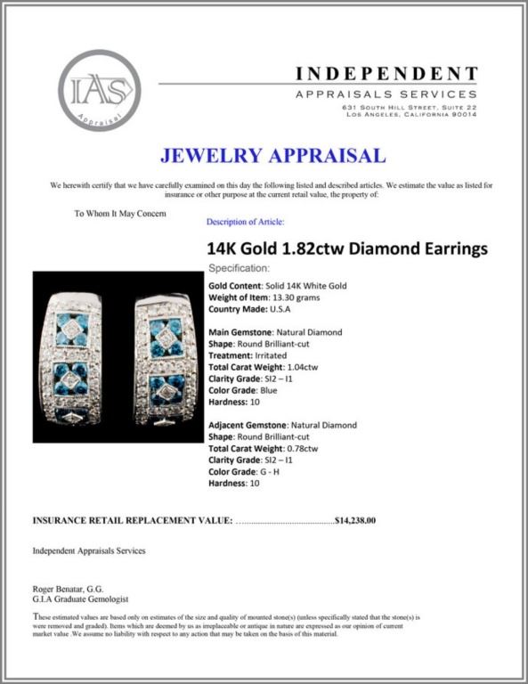 Regarding Appraised Jewelry and Loose Stones - Auctionfarm sends them out to a third party for Retail Replacement Value Appraisals, which are the most common. These types of evaluations are written for insurance needs. This would be the cost to replace the jewelry with an item of equal quality and kind, considered to be the current market price or the replacement value. This type of appraisal is done to protect you in the event of damage or loss of a valuable item. Our appraisals are conducted by independent 3rd Party appraisal firms that utilizes Certified GIA Gemologist. Appraisals should be used for verification of gemstone and/or metal weight, size, and grade only, not actual value. Appraisal value should be considered for insurance purposes only, not actual value, as price varies greatly from retail locations thru out the world. Items should not be purchased with the expectation to resell for appraisal price, or for profit.
