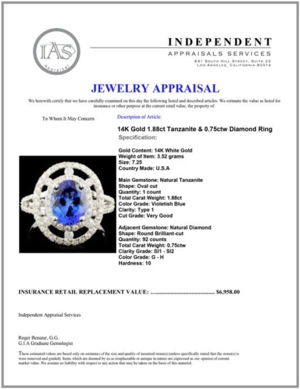 Regarding Appraised Jewelry and Loose Stones - Auctionfarm sends them out to a third party for Retail Replacement Value Appraisals, which are the most common. These types of evaluations are written for insurance needs. This would be the cost to replace the jewelry with an item of equal quality and kind, considered to be the current market price or the replacement value. This type of appraisal is done to protect you in the event of damage or loss of a valuable item. Our appraisals are conducted by independent 3rd Party appraisal firms that utilizes Certified GIA Gemologist. Appraisals should be used for verification of gemstone and/or metal weight, size, and grade only, not actual value. Appraisal value should be considered for insurance purposes only, not actual value, as price varies greatly from retail locations thru out the world. Items should not be purchased with the expectation to resell for appraisal price, or for profit.