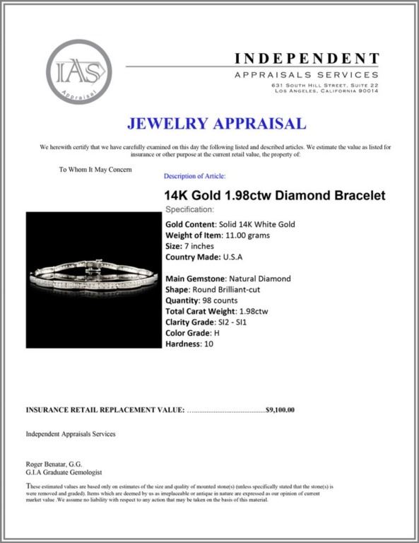 Regarding Appraised Jewelry and Loose Stones - Auctionfarm sends them out to a third party for Retail Replacement Value Appraisals, which are the most common. These types of evaluations are written for insurance needs. This would be the cost to replace the jewelry with an item of equal quality and kind, considered to be the current market price or the replacement value. This type of appraisal is done to protect you in the event of damage or loss of a valuable item. Our appraisals are conducted by independent 3rd Party appraisal firms that utilizes Certified GIA Gemologist. Appraisals should be used for verification of gemstone and/or metal weight, size, and grade only, not actual value. Appraisal value should be considered for insurance purposes only, not actual value, as price varies greatly from retail locations thru out the world. Items should not be purchased with the expectation to resell for appraisal price, or for profit.