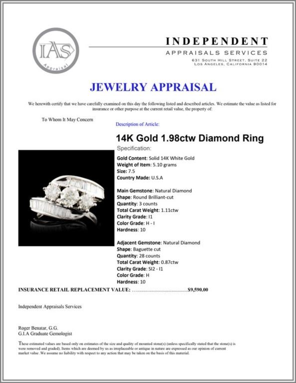 Regarding Appraised Jewelry and Loose Stones - Auctionfarm sends them out to a third party for Retail Replacement Value Appraisals, which are the most common. These types of evaluations are written for insurance needs. This would be the cost to replace the jewelry with an item of equal quality and kind, considered to be the current market price or the replacement value. This type of appraisal is done to protect you in the event of damage or loss of a valuable item. Our appraisals are conducted by independent 3rd Party appraisal firms that utilizes Certified GIA Gemologist. Appraisals should be used for verification of gemstone and/or metal weight, size, and grade only, not actual value. Appraisal value should be considered for insurance purposes only, not actual value, as price varies greatly from retail locations thru out the world. Items should not be purchased with the expectation to resell for appraisal price, or for profit.