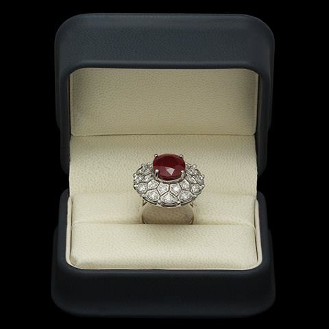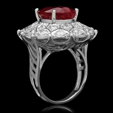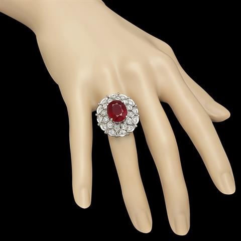 Retail: $10,462.00 ****** 14K Gold 10.35ct Ruby 1.73ct Diamond Ring ****** Metal: 14K Solid Gold / Total Item Weight: 12.5 grams / Country Made: United States / / Main Stone: Ruby / Color: Red / Carat Total Weight: 10.35 / Treatment: None / Cut: Very Good / / Secondary Stone: Diamond / Carat Total Weight: 1.73 / Treatment: None / Color Grade: G - H / Clarity: SI1 - SI2 / Cut: Round Brilliant /