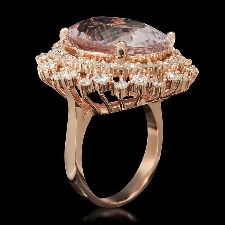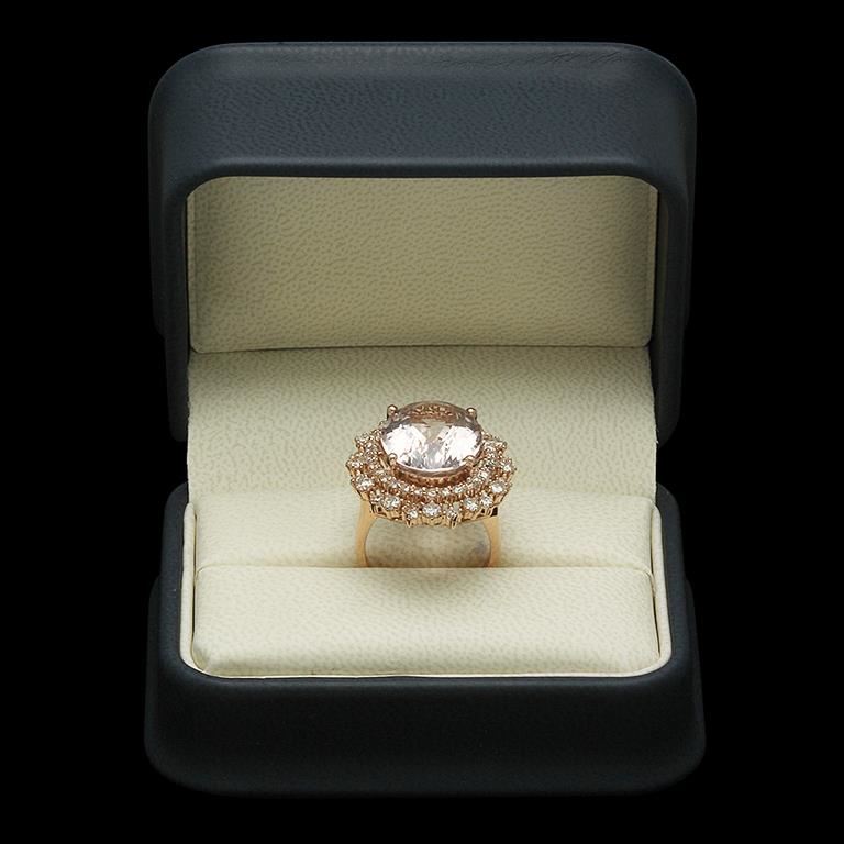 Retail: $14,135.00******14K Gold Morganite & Diamond Ring ****** Metal: 14K Solid Rose Gold / Total Item Weight: 10.5 grams / Country Made: United States / / Main Stone: Morganite / Color: Very Orangy Pink / Carat Total Weight: 11.52 / Treatment: None / Clarity: Type 2 / Cut: Very Good / / Secondary Stone: Diamond / Carat Total Weight: 1.92 / Treatment: None / Color Grade: G - H / Clarity: SI1 - SI2 / Cut: Round Brilliant /