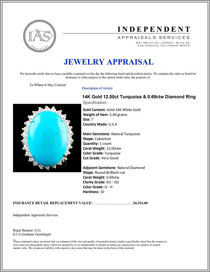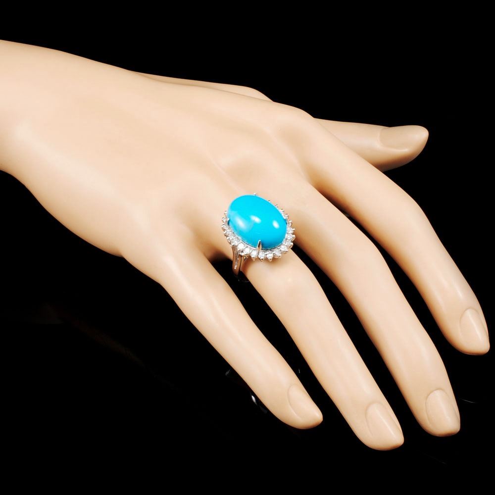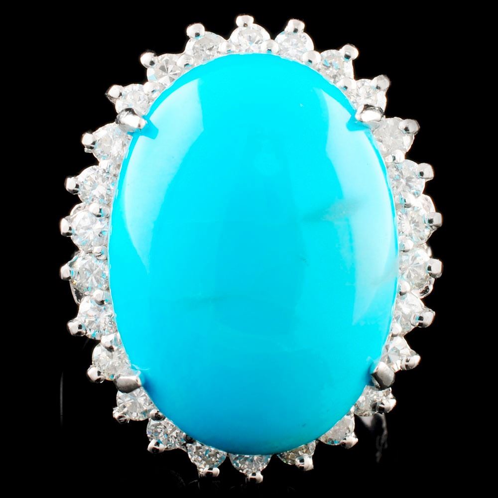 14K Gold 12.00ct Turquoise & 0.69ctw Diamond Ring