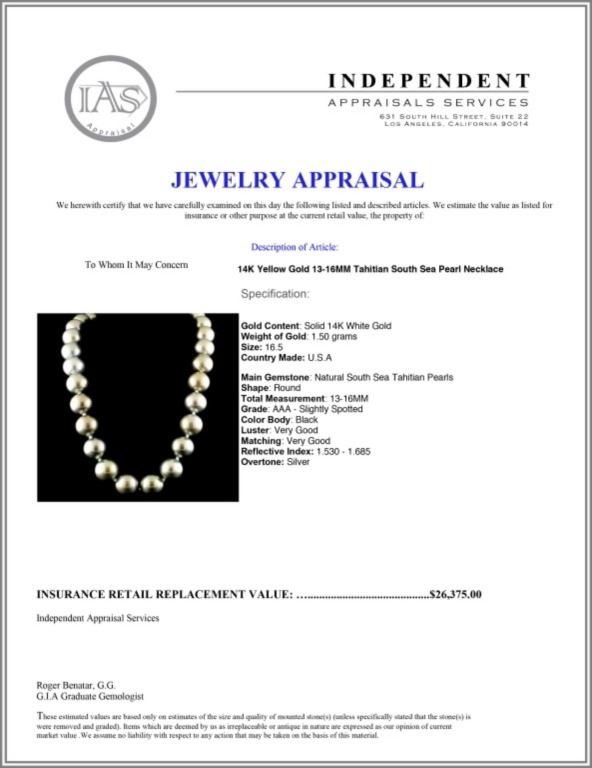 Regarding Appraised Jewelry and Loose Stones - Auctionfarm sends them out to a third party for Retail Replacement Value Appraisals, which are the most common. These types of evaluations are written for insurance needs. This would be the cost to replace the jewelry with an item of equal quality and kind, considered to be the current market price or the replacement value. This type of appraisal is done to protect you in the event of damage or loss of a valuable item. Our appraisals are conducted by independent 3rd Party appraisal firms that utilizes Certified GIA Gemologist. Appraisals should be used for verification of gemstone and/or metal weight, size, and grade only, not actual value. Appraisal value should be considered for insurance purposes only, not actual value, as price varies greatly from retail locations thru out the world. Items should not be purchased with the expectation to resell for appraisal price, or for profit.
