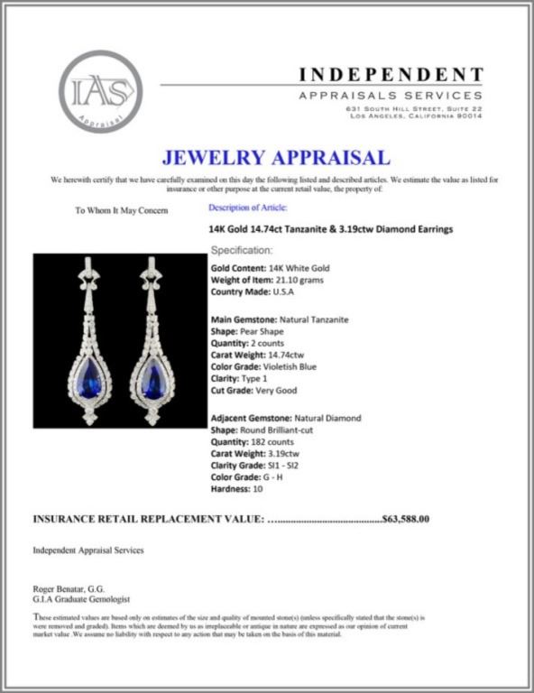 Regarding Appraised Jewelry and Loose Stones - Auctionfarm sends them out to a third party for Retail Replacement Value Appraisals, which are the most common. These types of evaluations are written for insurance needs. This would be the cost to replace the jewelry with an item of equal quality and kind, considered to be the current market price or the replacement value. This type of appraisal is done to protect you in the event of damage or loss of a valuable item. Our appraisals are conducted by independent 3rd Party appraisal firms that utilizes Certified GIA Gemologist. Appraisals should be used for verification of gemstone and/or metal weight, size, and grade only, not actual value. Appraisal value should be considered for insurance purposes only, not actual value, as price varies greatly from retail locations thru out the world. Items should not be purchased with the expectation to resell for appraisal price, or for profit.