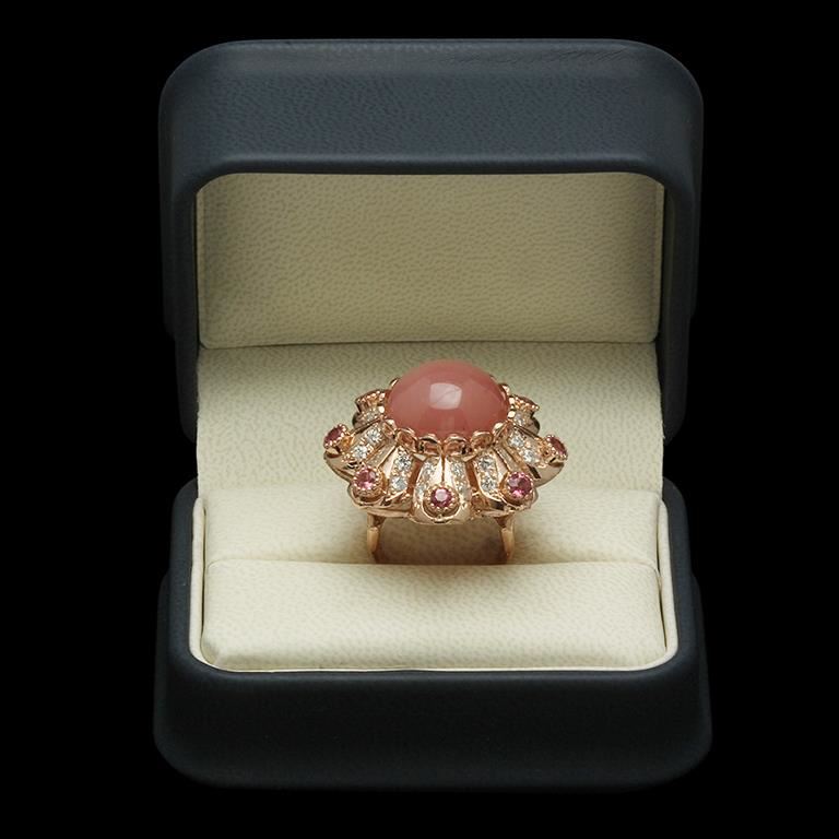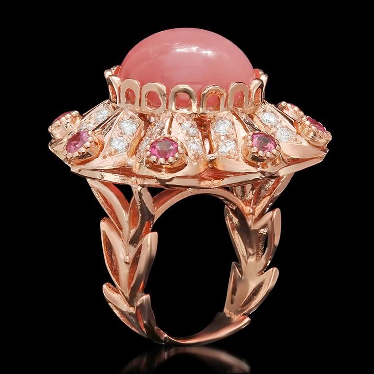 14K Gold 15.51ct Rose Quartz, 1.25ct Pink Sapphire 1.42ct Diamond Ring
