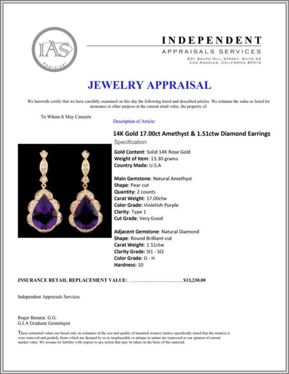 Regarding Appraised Jewelry and Loose Stones - Auctionfarm sends them out to a third party for Retail Replacement Value Appraisals, which are the most common. These types of evaluations are written for insurance needs. This would be the cost to replace the jewelry with an item of equal quality and kind, considered to be the current market price or the replacement value. This type of appraisal is done to protect you in the event of damage or loss of a valuable item. Our appraisals are conducted by independent 3rd Party appraisal firms that utilizes Certified GIA Gemologist. Appraisals should be used for verification of gemstone and/or metal weight, size, and grade only, not actual value. Appraisal value should be considered for insurance purposes only, not actual value, as price varies greatly from retail locations thru out the world. Items should not be purchased with the expectation to resell for appraisal price, or for profit.