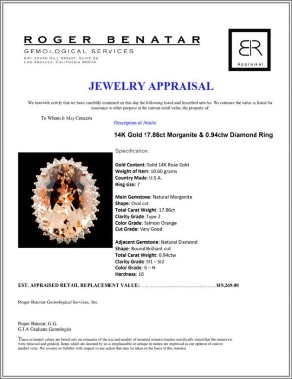 Regarding Appraised Jewelry and Loose Stones - Auctionfarm sends them out to a third party for Retail Replacement Value Appraisals, which are the most common. These types of evaluations are written for insurance needs. This would be the cost to replace the jewelry with an item of equal quality and kind, considered to be the current market price or the replacement value. This type of appraisal is done to protect you in the event of damage or loss of a valuable item. Our appraisals are conducted by independent 3rd Party appraisal firms that utilizes Certified GIA Gemologist. Appraisals should be used for verification of gemstone and/or metal weight, size, and grade only, not actual value. Appraisal value should be considered for insurance purposes only, not actual value, as price varies greatly from retail locations thru out the world. Items should not be purchased with the expectation to resell for appraisal price, or for profit.
