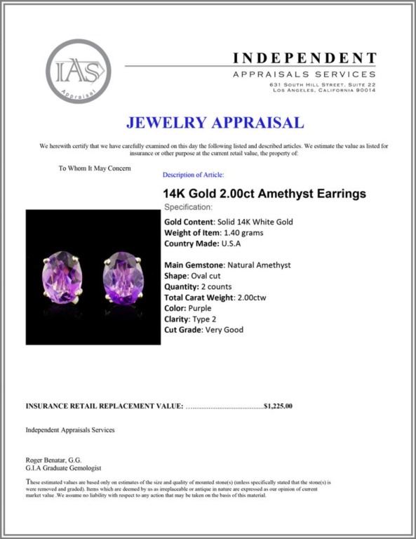 Regarding Appraised Jewelry and Loose Stones - Auctionfarm sends them out to a third party for Retail Replacement Value Appraisals, which are the most common. These types of evaluations are written for insurance needs. This would be the cost to replace the jewelry with an item of equal quality and kind, considered to be the current market price or the replacement value. This type of appraisal is done to protect you in the event of damage or loss of a valuable item. Our appraisals are conducted by independent 3rd Party appraisal firms that utilizes Certified GIA Gemologist. Appraisals should be used for verification of gemstone and/or metal weight, size, and grade only, not actual value. Appraisal value should be considered for insurance purposes only, not actual value, as price varies greatly from retail locations thru out the world. Items should not be purchased with the expectation to resell for appraisal price, or for profit.