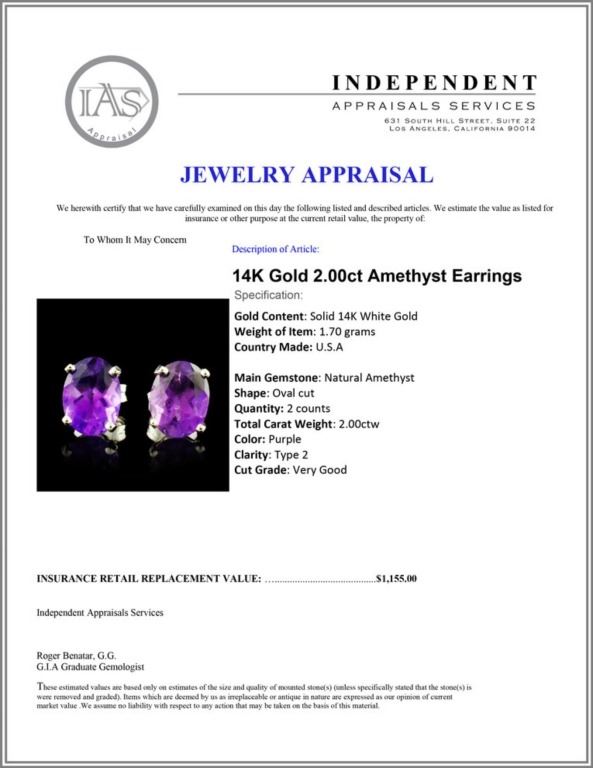 Regarding Appraised Jewelry and Loose Stones - Auctionfarm sends them out to a third party for Retail Replacement Value Appraisals, which are the most common. These types of evaluations are written for insurance needs. This would be the cost to replace the jewelry with an item of equal quality and kind, considered to be the current market price or the replacement value. This type of appraisal is done to protect you in the event of damage or loss of a valuable item. Our appraisals are conducted by independent 3rd Party appraisal firms that utilizes Certified GIA Gemologist. Appraisals should be used for verification of gemstone and/or metal weight, size, and grade only, not actual value. Appraisal value should be considered for insurance purposes only, not actual value, as price varies greatly from retail locations thru out the world. Items should not be purchased with the expectation to resell for appraisal price, or for profit.