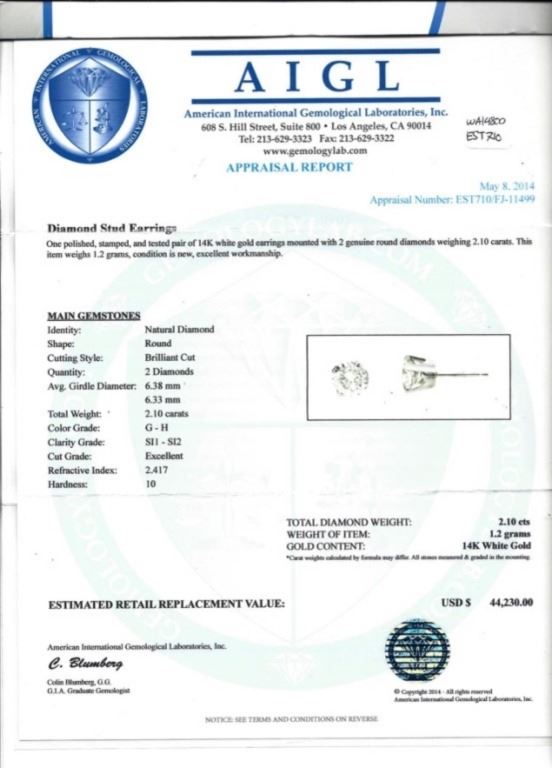 Regarding Appraised Jewelry and Loose Stones - Auctionfarm sends them out to a third party for Retail Replacement Value Appraisals, which are the most common. These types of evaluations are written for insurance needs. This would be the cost to replace the jewelry with an item of equal quality and kind, considered to be the current market price or the replacement value. This type of appraisal is done to protect you in the event of damage or loss of a valuable item. Our appraisals are conducted by independent 3rd Party appraisal firms that utilizes Certified GIA Gemologist. Appraisals should be used for verification of gemstone and/or metal weight, size, and grade only, not actual value. Appraisal value should be considered for insurance purposes only, not actual value, as price varies greatly from retail locations thru out the world. Items should not be purchased with the expectation to resell for appraisal price, or for profit.