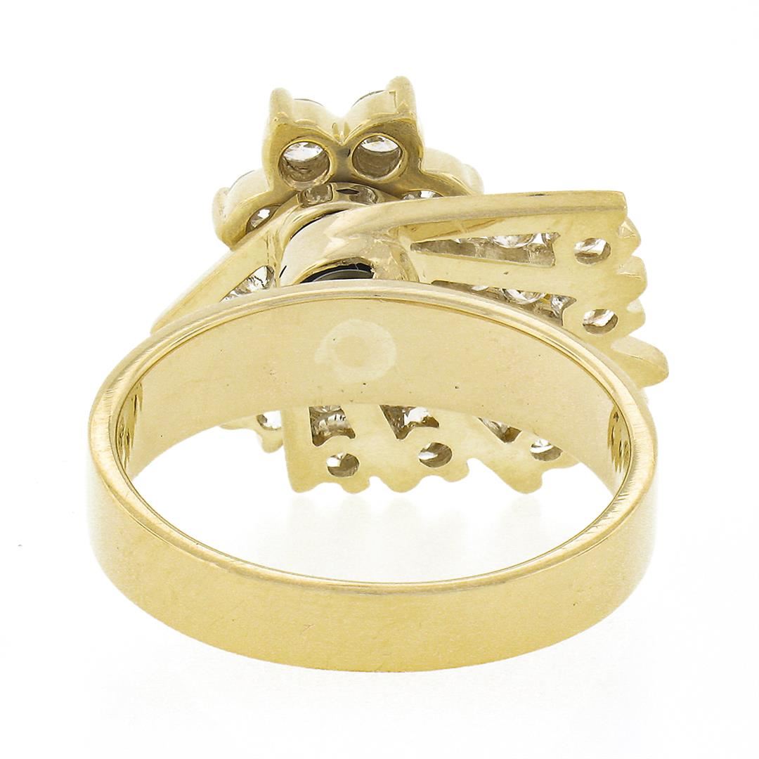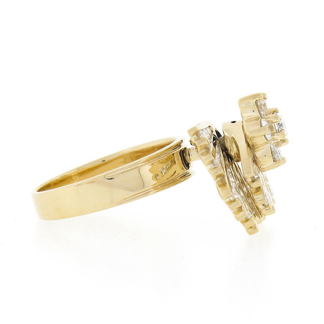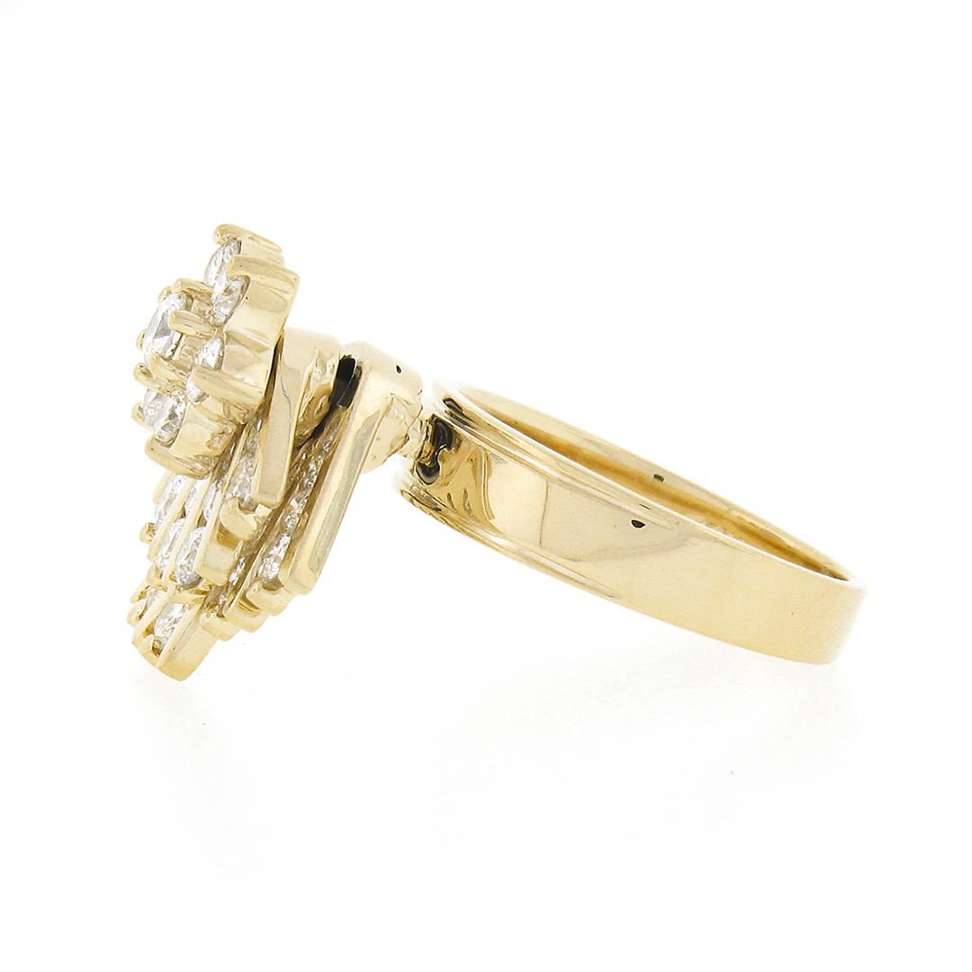 A solid 14k yellow gold spinning fan cocktail ring, with 46 round brilliant cut natural diamonds (G/H - VS2/SI2 ; 2.30ctw). The ring is size 7.5, weighs a total of 8.43 grams, and measures 9.40mm wide.
