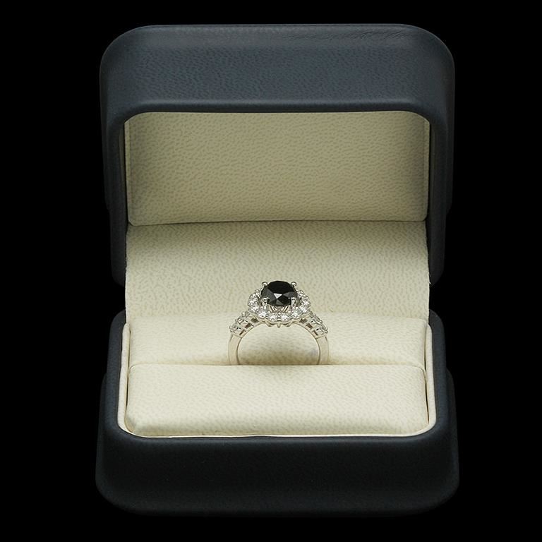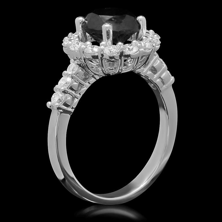 Retail: $12,280.00 ******14k Gold Fancy Color Diamond & Diamond Ring ****** Metal: 14K Solid White Gold / Total Item Weight: 4.7 / Country Made: United States / / Main Stone: Diamond / Color: Fancy Black / Carat Total Weight: 2.32 / Treatment: None / Clarity: Type 2 / Cut: Very Good / / Secondary Stone: Diamond / Carat Total Weight: 3.32 / Treatment: None / Color Grade: G -H / Clarity: SI1 - SI2 / Cut: Round Brilliant /