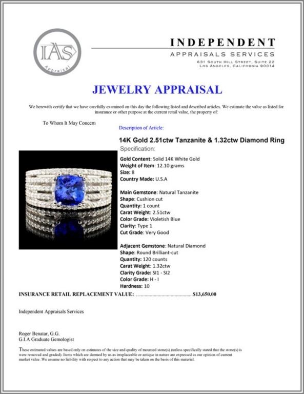 Regarding Appraised Jewelry and Loose Stones - Auctionfarm sends them out to a third party for Retail Replacement Value Appraisals, which are the most common. These types of evaluations are written for insurance needs. This would be the cost to replace the jewelry with an item of equal quality and kind, considered to be the current market price or the replacement value. This type of appraisal is done to protect you in the event of damage or loss of a valuable item. Our appraisals are conducted by independent 3rd Party appraisal firms that utilizes Certified GIA Gemologist. Appraisals should be used for verification of gemstone and/or metal weight, size, and grade only, not actual value. Appraisal value should be considered for insurance purposes only, not actual value, as price varies greatly from retail locations thru out the world. Items should not be purchased with the expectation to resell for appraisal price, or for profit.